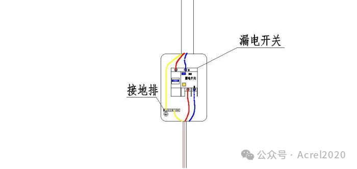 在取電處裝好配電箱和漏電開關與接地排,按下圖將線接好。