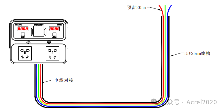用紅線(火線)、藍線(零線)、黃綠線(地線)從取電處接入,布線時要用15MM*25MM的線槽或者用20PVC線管,在將電線與設備對接好,另一端引到取電處預留好足夠長的線頭,線路全程不裸露。