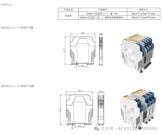 輸入:1路 4-20mA,輸出:2路 4-20mA,工作電源:24V DC 訂貨型號:BM200-DI/I-C12