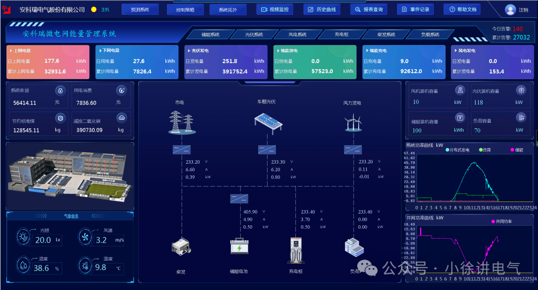 該系統具備強大的實時監控功能,能夠對微電網中的光伏、風電、儲能、充電樁等設備的運行狀態進行 24 小時不間斷監測。通過可視化界面,用戶可以直觀地看到各個設備的實時數據,如電壓、電流、功率等 ,并能及時發現設備的異常情況。