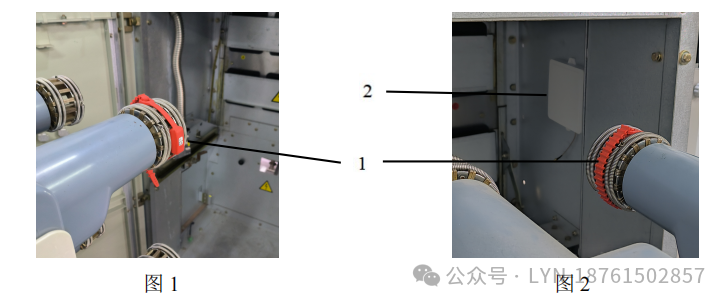 傳感器與天線在進線母排室的安裝位置如下圖所示,1 為傳感器主體的位置,2 為天線的位置,保證傳感器主體與天線處于面對面的位置。