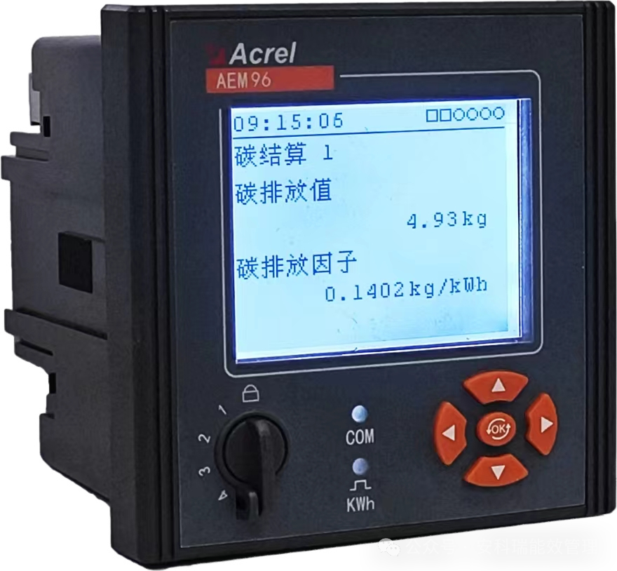 安科瑞AEM96三相多功能碳電表,集成三相電力參數測量、遙信、遙控、分時電能計量及碳排放統計,根據不同使用工況的電碳折算因子集成碳結算功能,包含12組碳排放值及對應的碳排放因子,它能夠實時計算并給出企業生產用電帶來的碳排放量,讓碳排放像電能一樣方便記錄,配合安科瑞碳資產管理平臺,大大簡化企業的碳排放統計工作。
