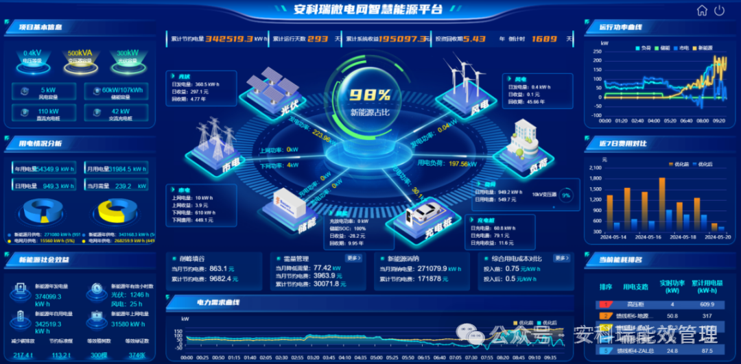 ③能源分析:具備微電網能耗及效益分析、微電網經濟運行分析、多維度電量分析,并進行日、月、年能源報表統計;