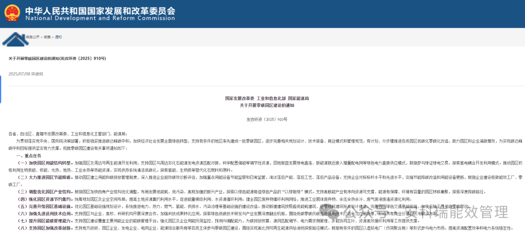 國家發展改革委工業和信息化部國家能源局關于開展零碳園區建設的通知!