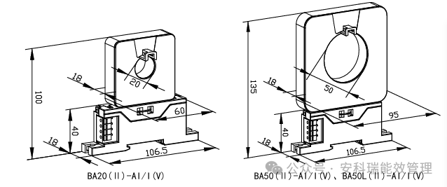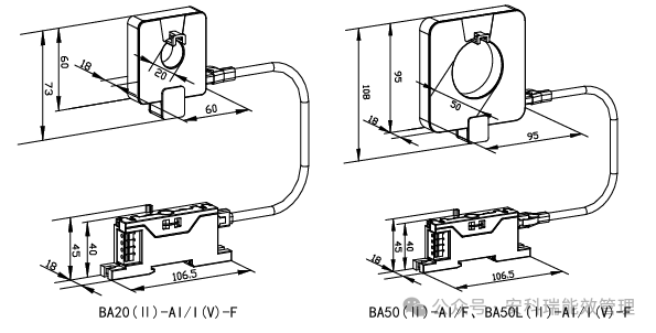 BA系列產品應用電磁感應原理,對電網中的交流電流進行實時測量,采用恒流和線性補償技術,將其隔離變換為標準的直流信號輸出。DC12V或24V安全電壓或AC/DC85-265V電壓供電,可廣泛用于工業自動化領域。BA50L為變流剩余電流互感器主要檢測用電系統的漏電流,能隨時掌握電氣線路和設備的情況,防止因漏電而發生的火災等事故。