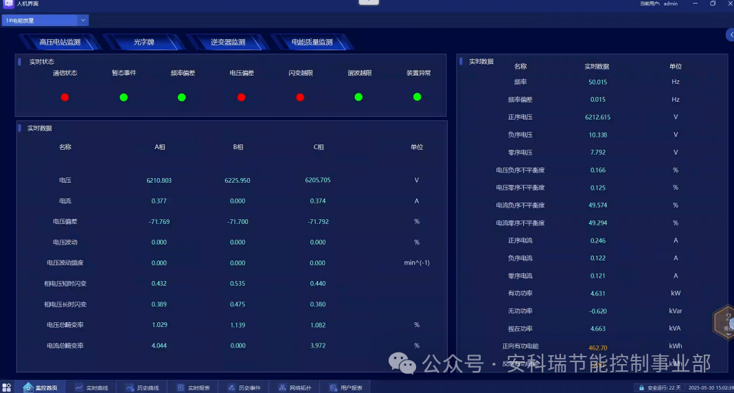 歷史曲線是時(shí)間序列數(shù)據(jù)的可視化工具,通過記錄電壓、電流、功率、頻率、設(shè)備狀態(tài)等關(guān)鍵參數(shù)隨時(shí)間的變化軌跡,為電網(wǎng)運(yùn)行、設(shè)備管理、故障診斷及優(yōu)化決策提供核心支撐。在電力系統(tǒng)發(fā)生故障后,可以通過歷史曲線定位故障源頭、分析演變過程。電力設(shè)備(如變壓器、斷路器、電纜)的故障往往有“潛伏期",歷史曲線通過記錄設(shè)備運(yùn)行參數(shù)的長期趨勢變化,可提前識別異常,避免突發(fā)停機(jī)。電能質(zhì)量指標(biāo)(如電壓偏差、頻率波動(dòng)、諧波畸變率)直接影響用電設(shè)備的壽命和電網(wǎng)穩(wěn)定性,歷史曲線是定位污染源、評估治理效果的核心依據(jù)。電力系統(tǒng)的線損(電能傳輸損耗)、無功損耗等與運(yùn)行方式密切相關(guān),歷史曲線可幫助挖掘節(jié)能潛力,降低運(yùn)營成本。