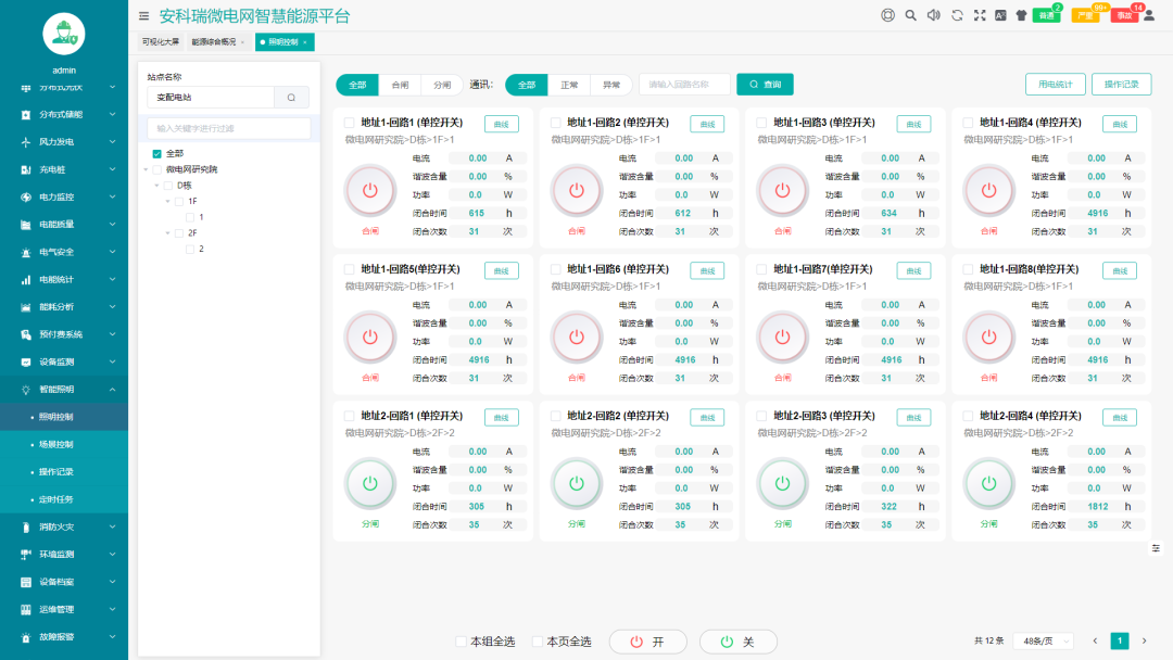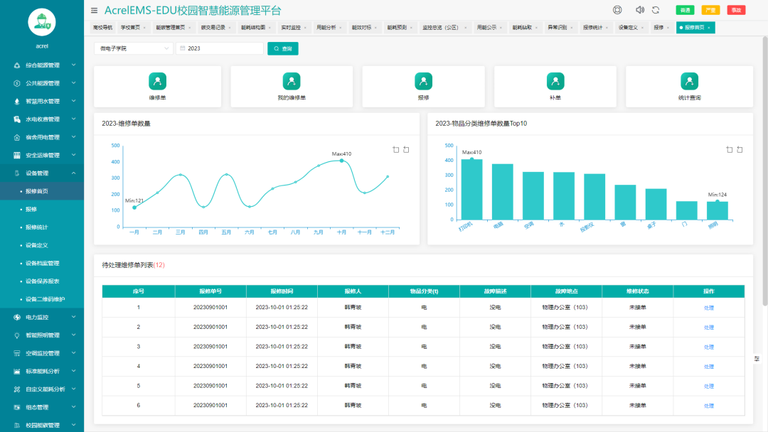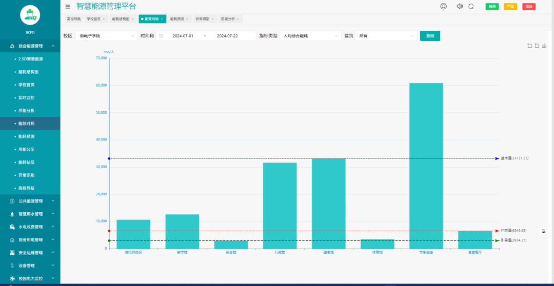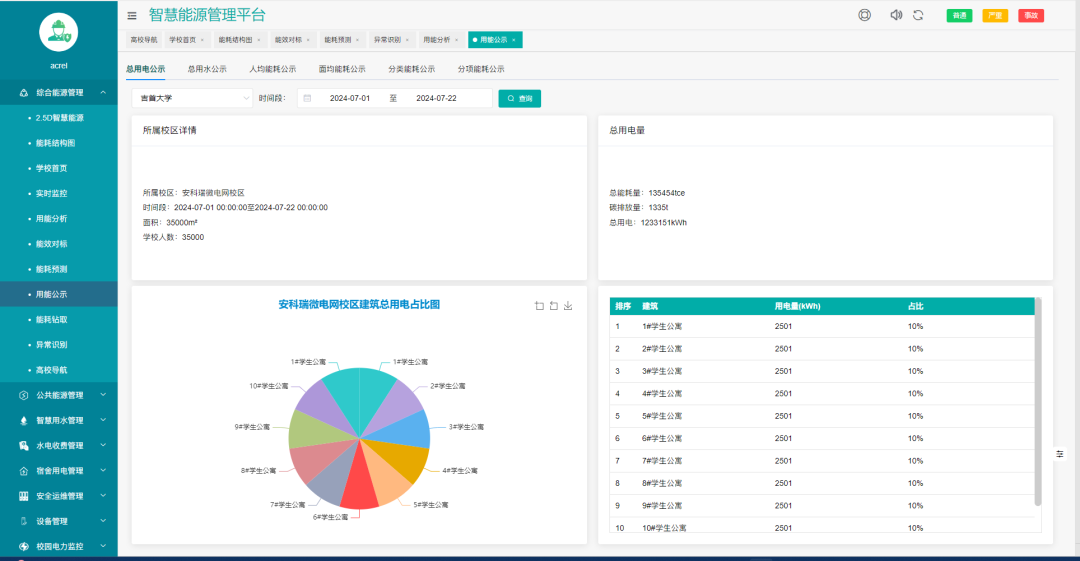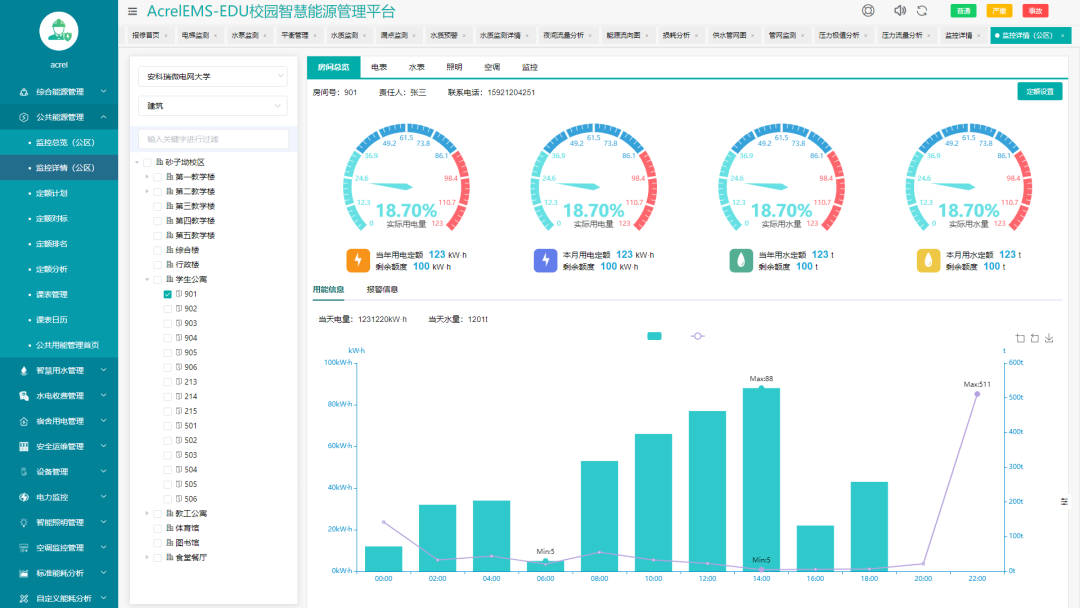 公共用能管理系統:針對教學、辦公等公共區域用能進行檢測和管理,以房間為單位對水電用能進行統計,并對照明和空調用能進行策略管控。