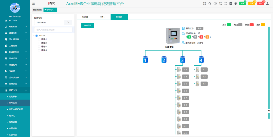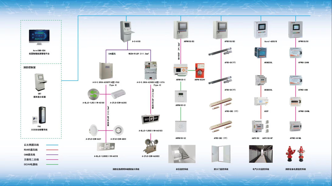 校園電氣安全/消防火災:傳統消防電氣子系統為獨立運行系統,系統檢測到異常后只能在消防控制室主機上進行報警預警,無法進行遠程報警,智慧能源管理平臺可接入消防電氣子系統檢測數據,既保證子系統獨立性符合消防驗收要求,又可借助平臺豐富的報警功能對異常情況預警報警,方便后勤管理。