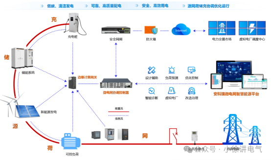 系統(tǒng)覆蓋企業(yè)微電網(wǎng)“源-網(wǎng)-荷-儲(chǔ)-充"各環(huán)節(jié),通過智能網(wǎng)關(guān)采集測(cè)控裝置、光伏、儲(chǔ)能、充電樁、常規(guī)負(fù)荷數(shù)據(jù),根據(jù)負(fù)荷變化和電網(wǎng)調(diào)度進(jìn)行優(yōu)化控制,促進(jìn)新能源消納的同時(shí)降低對(duì)電網(wǎng)的至大需量,使之運(yùn)行安全。
