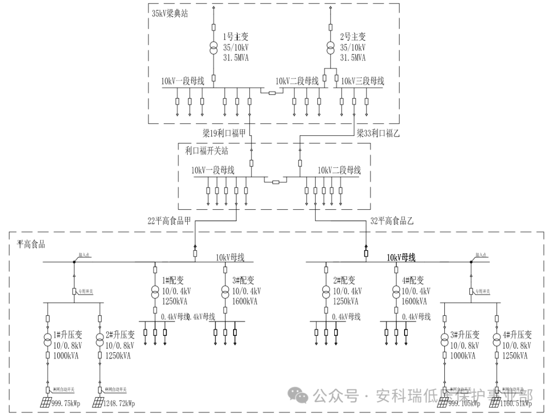 上海華電奉賢平高食品 4408.085kwp 分布式光伏發(fā)電項(xiàng)目接入方案示意圖如下: