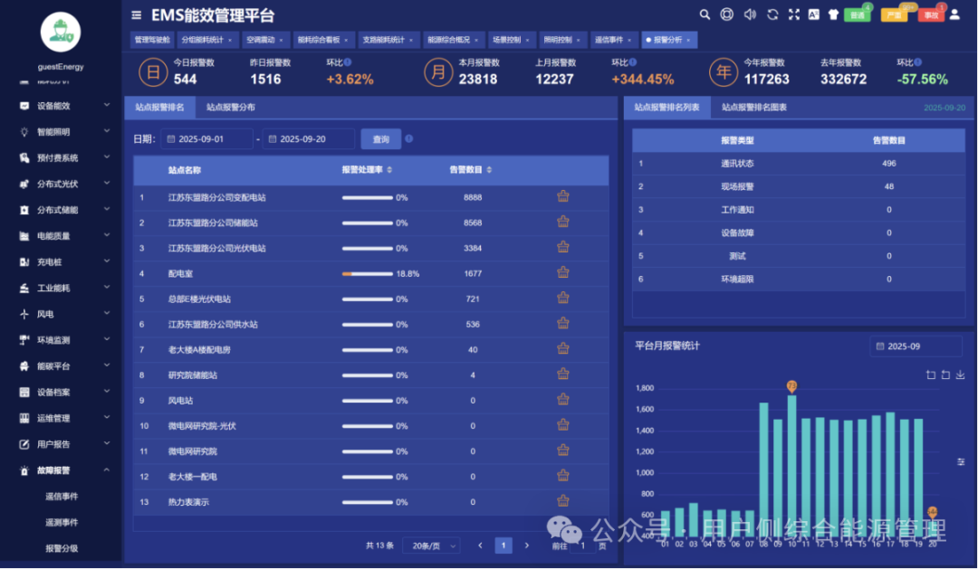 可按建筑、樓層、部門、租戶甚至單臺設備拆分能耗,生成分類(照明、空調、動力)、分項報表。比如寫字樓管理者能清晰看到某科技公司的月度用電量,商場可統計各品牌店鋪的空調能耗占比,解決 “按面積均攤" 的計費糾紛。