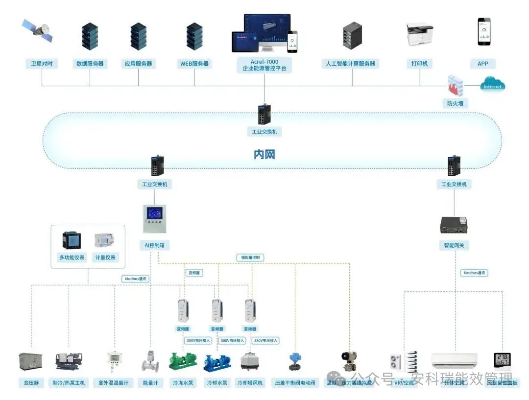 中央空調系統(tǒng)由冷熱源系統(tǒng)與空氣調節(jié)系統(tǒng)(末端風系統(tǒng))組成,相同客觀環(huán)境下,末端設備啟停數量及風溫、風速設定決定系統(tǒng)整體電耗;負荷調峰可通過中央空調 AI 調優(yōu)實現,即結合 AI 算法實時預測冷 / 熱負荷,調整主機、水泵、冷卻塔風機的運行參數,搭配剛性與柔性調控策略,提升系統(tǒng)效率、降低電負荷,避免超需量。