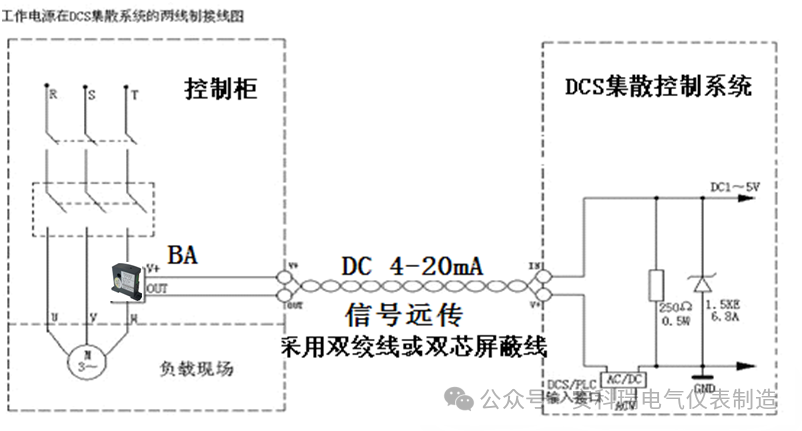 基于上述污水處理行業中的水泵、循環泵在無人巡檢的情況,可通過BA系列交流電流變送器來進行監測,及時了解水泵的功率狀態,通過PLC或DSC系統采集BA傳感器的變送數據來正確判斷水泵的正常工作情況。